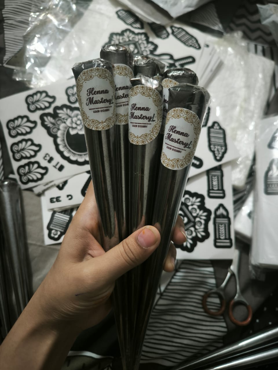 Experience the rich, deep color of our Dark Stained Mehandi Cones, professionally formulated for intense staining results. These premium cones deliver consistent flow and precise application, allowing for intricate designs with exceptional color payoff. Ideal for professional artists and enthusiasts seeking long-lasting, vibrant henna patterns with minimal drying time.